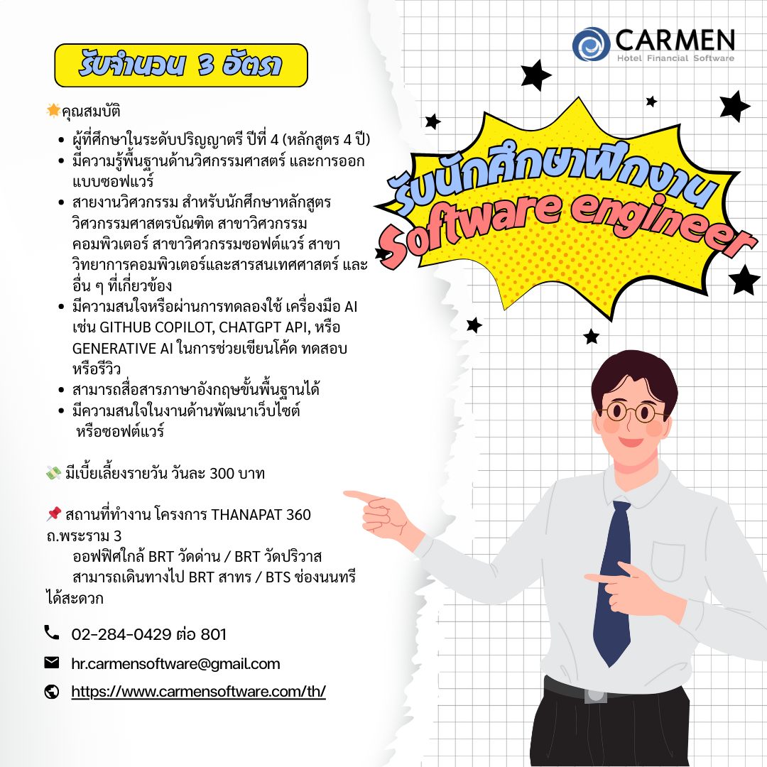 ปี 2568 รับสมัครนิสิตฝึกงาน บริษัท คาร์เมน ซอฟแวร์ จำกัด