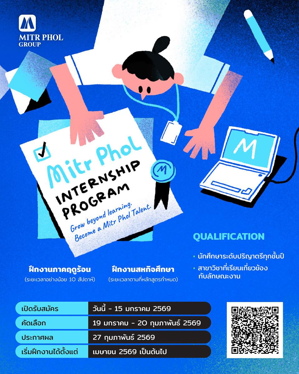 ปี 2568 รับสมัครนิสิตฝึกงาน Mitr Phol Internship Program 2026