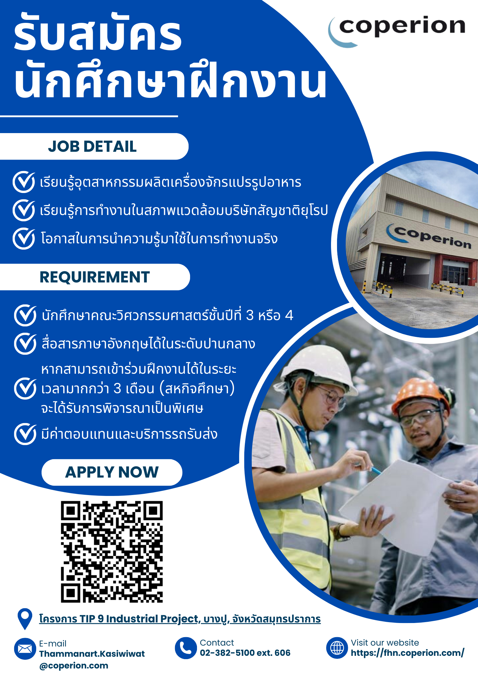 ปี 2568 รับสมัครนิสิตฝึกงาน บริษัท โคพีเรียน (ประเทศไทย) จำกัด