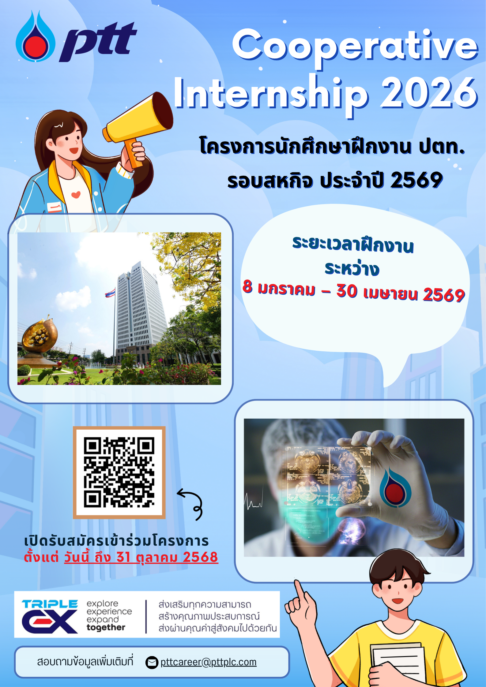 ปี 2568 รับสมัครนิสิตสหกิจศึกษา บริษัท ปตท. จำกัด (มหาชน)
