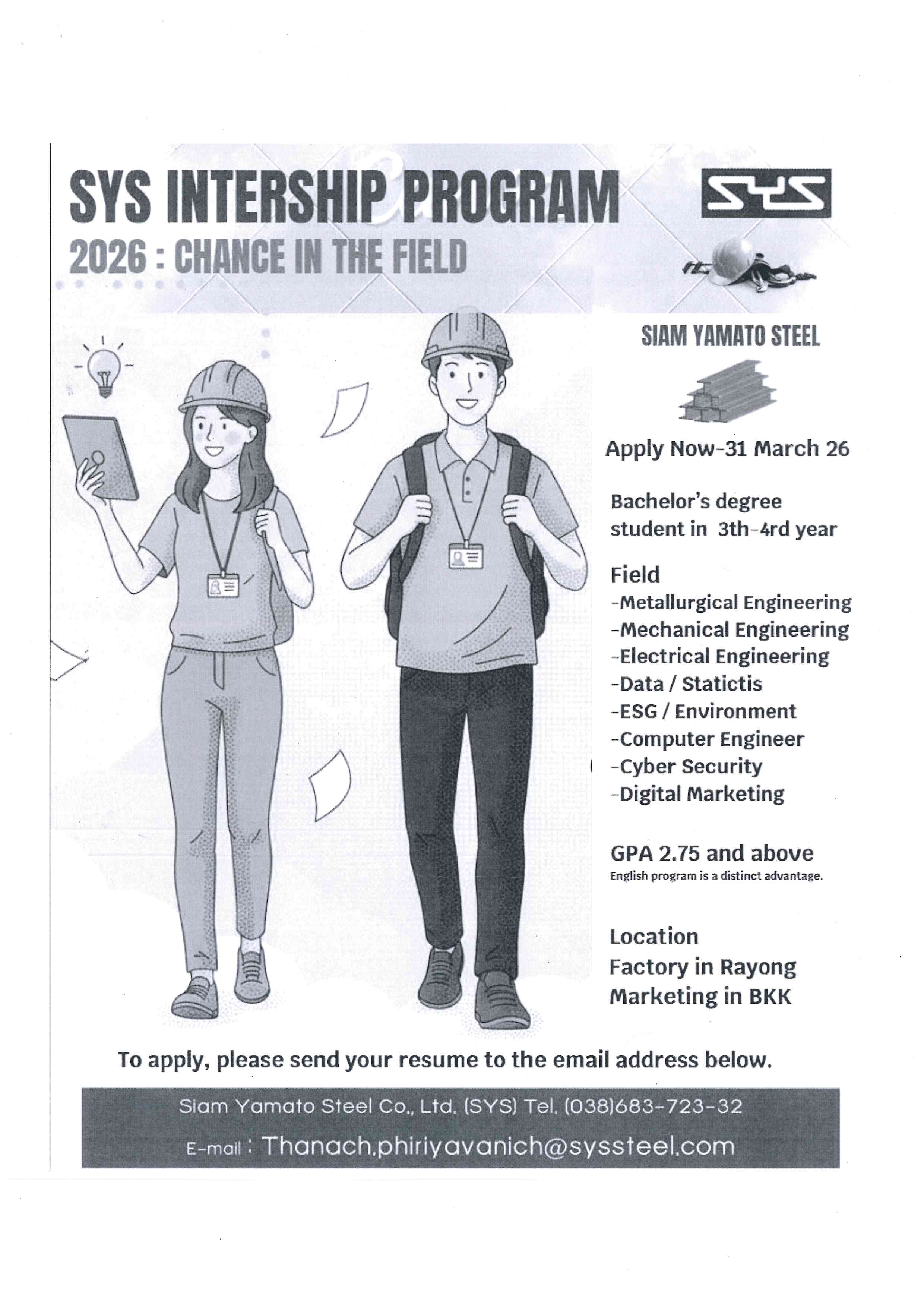 ปี 2568 รับสมัครนิสิตฝึกงาน บริษัท เหล็กสยามยามาโตะ จำกัด